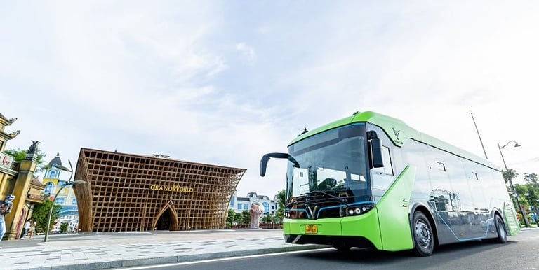 터미널 밖에서 초록색 빈버스(VinBus)를 찾아보세요. 이 버스는 무료이며 푸꾸옥 중심지와 북부 지역을 연결합니다. 운행 시간표는 빈버스 앱을 다운로드해 확인할 수 있습니다.